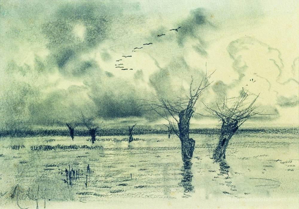 Nous vous proposons une reproduction artisanale sur toile du célèbre tableau 'Printemps. Granes volant.' de Isaac Levitan, provenant du Musée de la Reproduction.