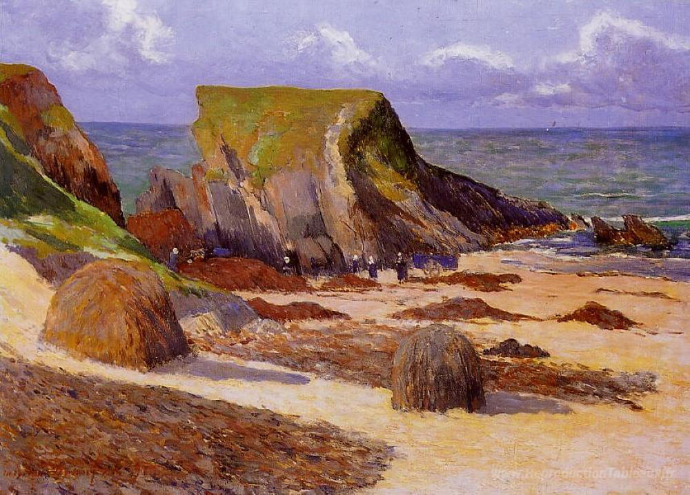 Nous vous proposons une reproduction artisanale sur toile du célèbre tableau 'Récolte de Goemon' de Maxime Maufra, provenant du Musée de la Reproduction.