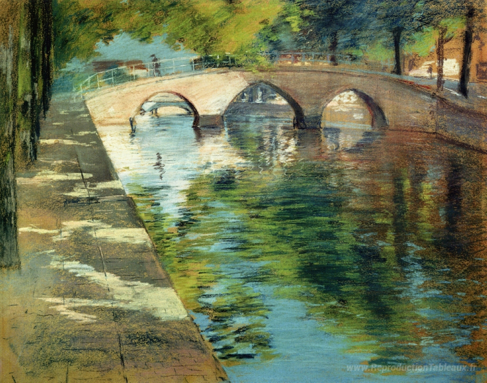 Nous vous proposons une reproduction artisanale sur toile du célèbre tableau 'Réflexions (AKA Canal Scene)' de William Merritt Chase, provenant du Musée de la Reproduction.