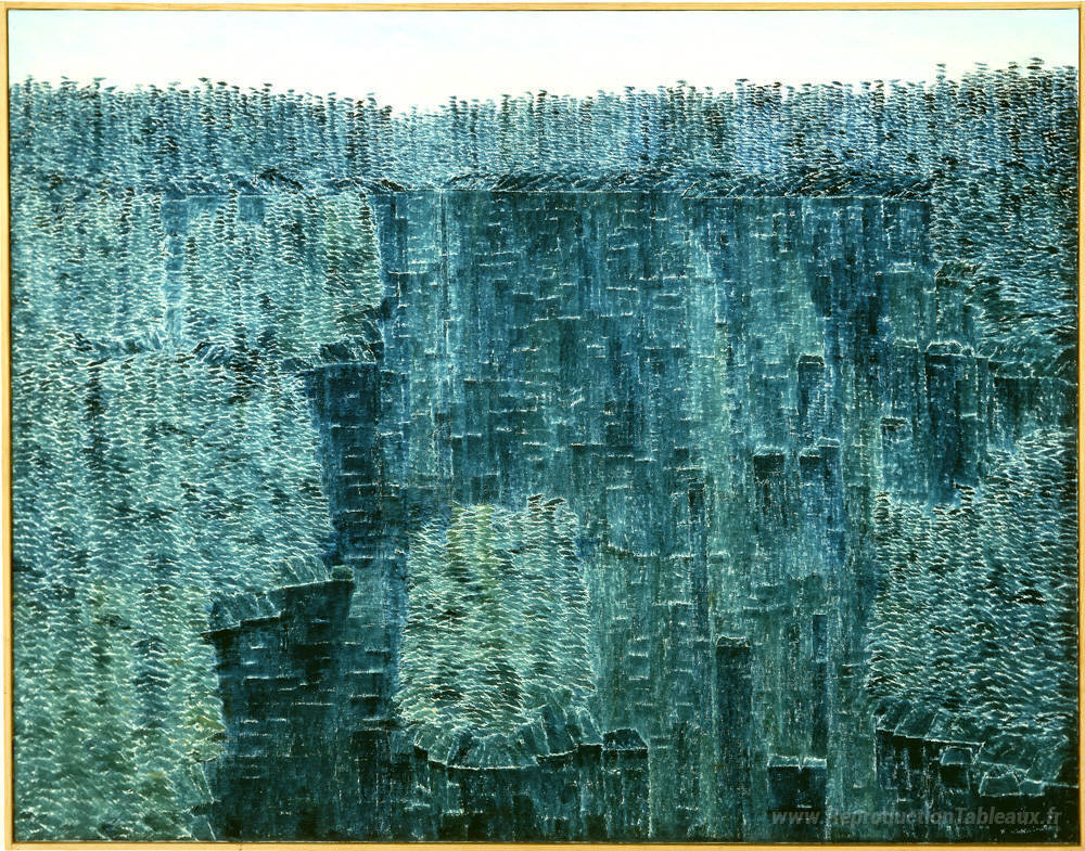 Nous vous proposons une reproduction artisanale sur toile du célèbre tableau 'Réflexions bleues' de Kazuo Nakamura, provenant du Musée de la Reproduction.