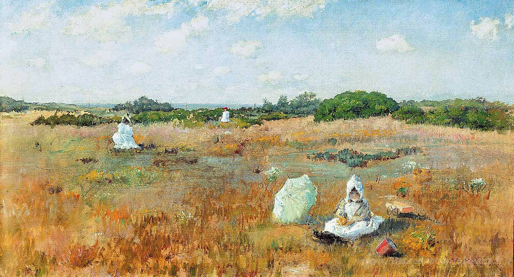 Nous vous proposons une reproduction artisanale sur toile du célèbre tableau 'Rassembler les fleurs d'automne' de William Merritt Chase, provenant du Musée de la Reproduction.