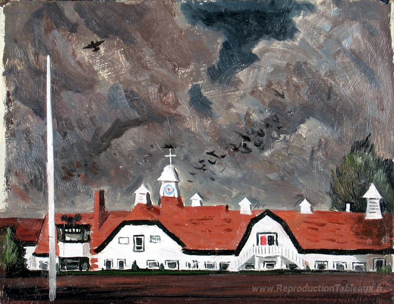 Nous vous proposons une reproduction artisanale sur toile du célèbre tableau 'RCAF Elem. École, Eglinton' de Jack Bush, provenant du Musée de la Reproduction.