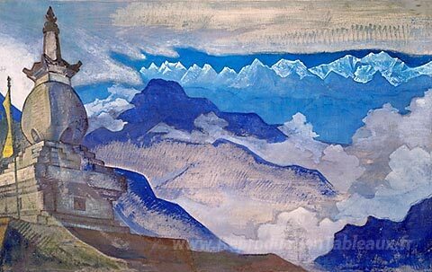 Nous vous proposons une reproduction artisanale sur toile du célèbre tableau 'Rinchenpong' de Nicholas Roerich, provenant du Musée de la Reproduction.