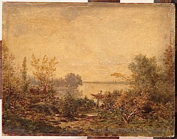 Nous vous proposons une reproduction artisanale sur toile du célèbre tableau 'Rivière' de Theodore Rousseau, provenant du Musée de la Reproduction.