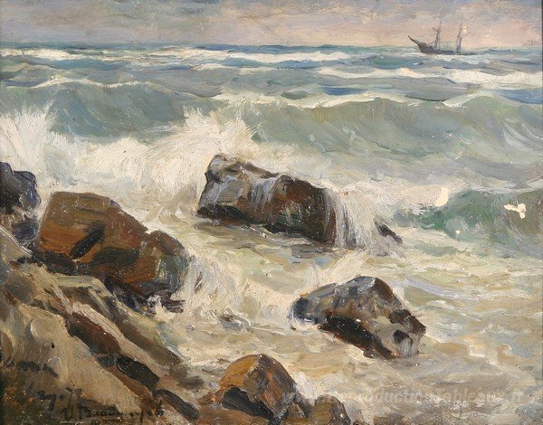 Nous vous proposons une reproduction artisanale sur toile du célèbre tableau 'Roches du golfe de Finlande' de Ivan Vladimirov, provenant du Musée de la Reproduction.