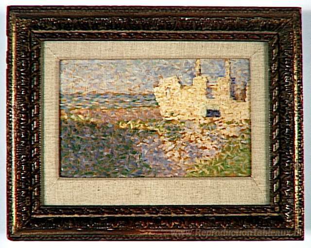 Nous vous proposons une reproduction artisanale sur toile du célèbre tableau 'Ruines à grand-camp' de Georges Seurat, provenant du Musée de la Reproduction.