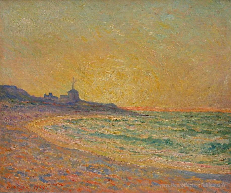 Nous vous proposons une reproduction artisanale sur toile du célèbre tableau 'Sémaphore du Beg-Meil, Bretagne' de Maxime Maufra, provenant du Musée de la Reproduction.