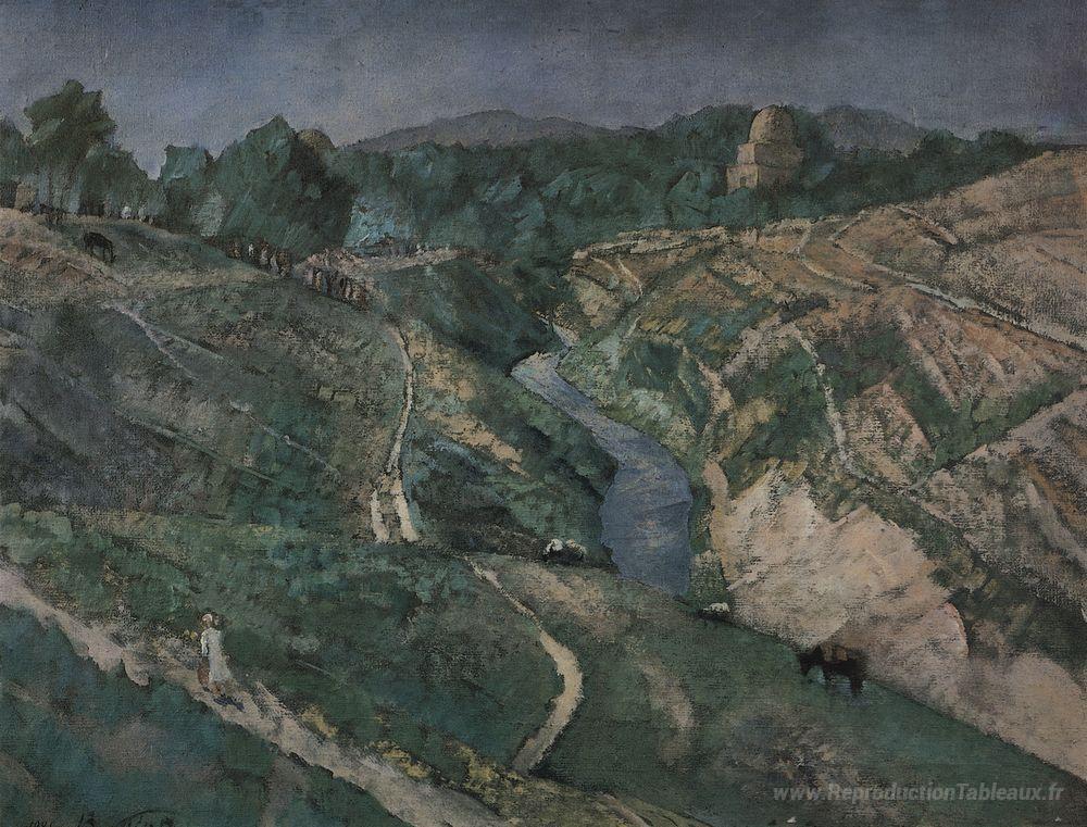 Nous vous proposons une reproduction artisanale sur toile du célèbre tableau 'Samarcanda' de Kuzma Petrov-Vodkin, provenant du Musée de la Reproduction.