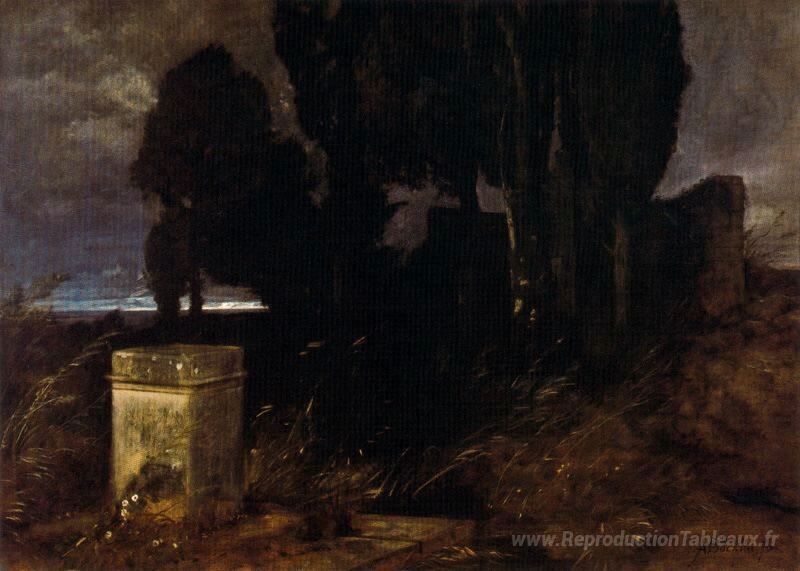 Nous vous proposons une reproduction artisanale sur toile du célèbre tableau 'Sanctuaire d'Hercule' de Arnold Böcklin, provenant du Musée de la Reproduction.