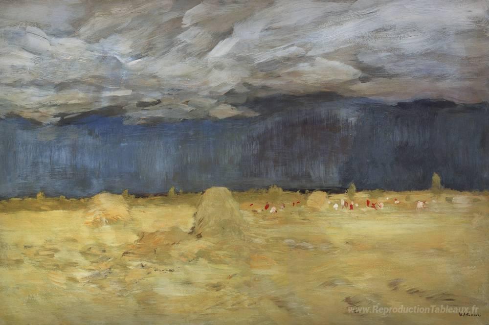 Nous vous proposons une reproduction artisanale sur toile du célèbre tableau 'Se faire un bain de foin' de Isaac Levitan, provenant du Musée de la Reproduction.