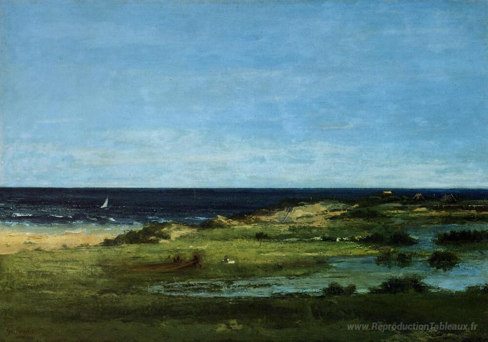 Nous vous proposons une reproduction artisanale sur toile du célèbre tableau 'Seacoast (souvenir de Les Cabanes)' de Gustave Courbet, provenant du Musée de la Reproduction.