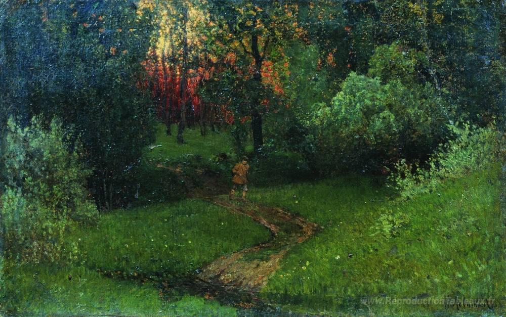Nous vous proposons une reproduction artisanale sur toile du célèbre tableau 'Sentier dans la forêt' de Isaac Levitan, provenant du Musée de la Reproduction.