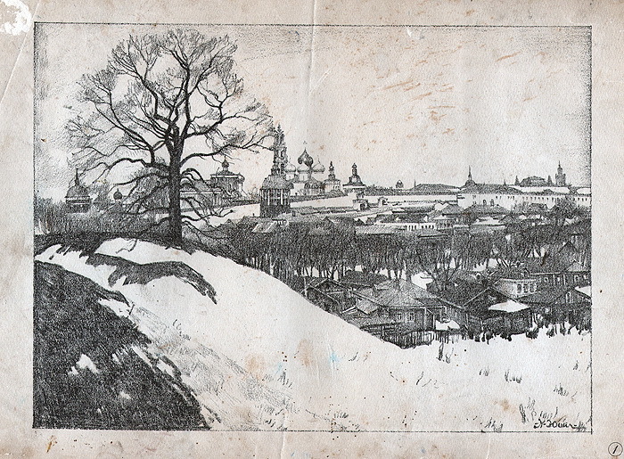 Nous vous proposons une reproduction artisanale sur toile du célèbre tableau 'Sergiyev Posad. Vue du monastère avec du chêne' de Konstantin Yuon, provenant du Musée de la Reproduction.