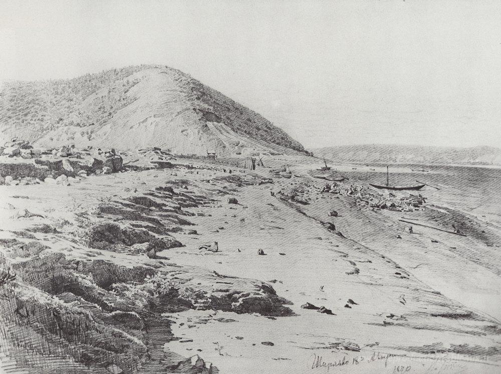 Nous vous proposons une reproduction artisanale sur toile du célèbre tableau 'Shiryaev Gully sur la Volga' de Ilya Repin, provenant du Musée de la Reproduction.