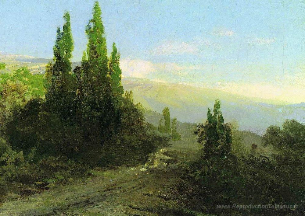 Nous vous proposons une reproduction artisanale sur toile du célèbre tableau 'Soirée en Crimée' de Fyodor Vasilyev, provenant du Musée de la Reproduction.
