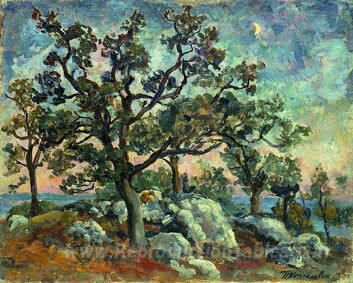 Nous vous proposons une reproduction artisanale sur toile du célèbre tableau 'Soir' de Pyotr Konchalovsky, provenant du Musée de la Reproduction.