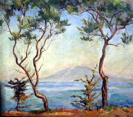 Nous vous proposons une reproduction artisanale sur toile du célèbre tableau 'Sorrento. Le mont Vésuve. Deux oliviers.' de Pyotr Konchalovsky, provenant du Musée de la Reproduction.