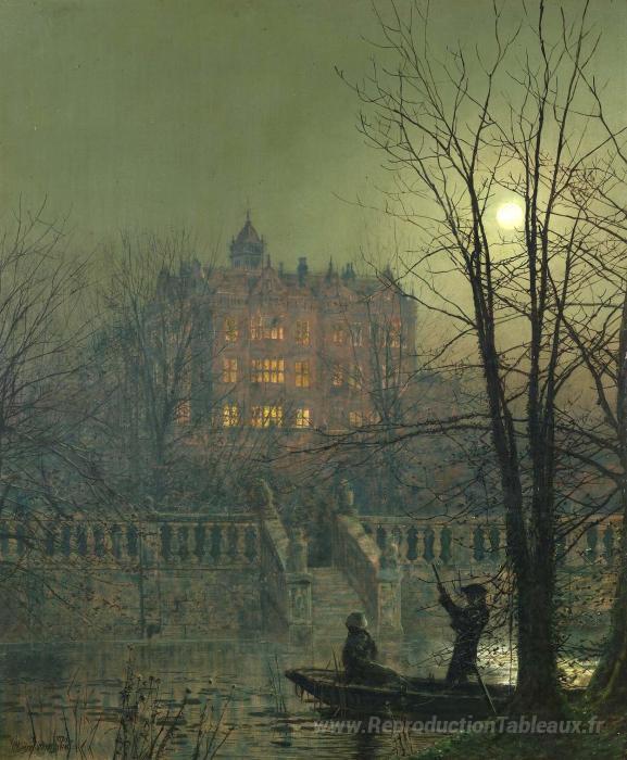 Nous vous proposons une reproduction artisanale sur toile du célèbre tableau 'Sous les rayons de lune' de John Atkinson Grimshaw, provenant du Musée de la Reproduction.