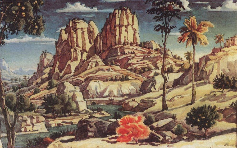 Nous vous proposons une reproduction artisanale sur toile du célèbre tableau 'Souvenirs de Mantegna' de Konstantin Bogaevsky, provenant du Musée de la Reproduction.