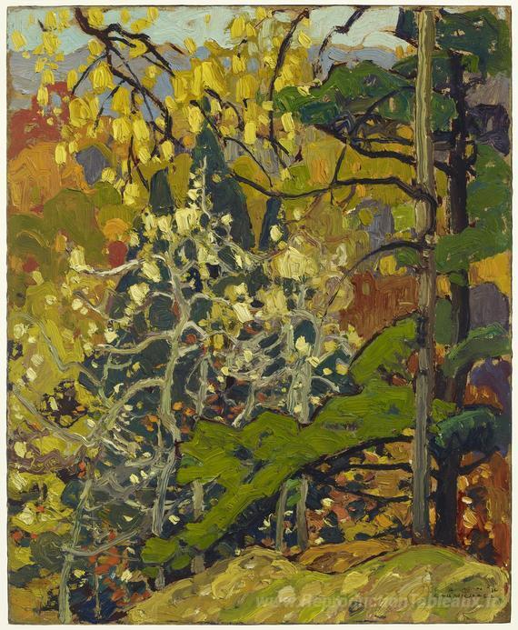 Nous vous proposons une reproduction artisanale sur toile du célèbre tableau 'Splendeur d'automne' de Franklin Carmichael, provenant du Musée de la Reproduction.
