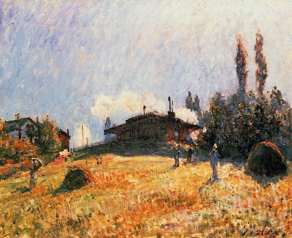Nous vous proposons une reproduction artisanale sur toile du célèbre tableau 'Station à SEVRES' de Alfred Sisley, provenant du Musée de la Reproduction.