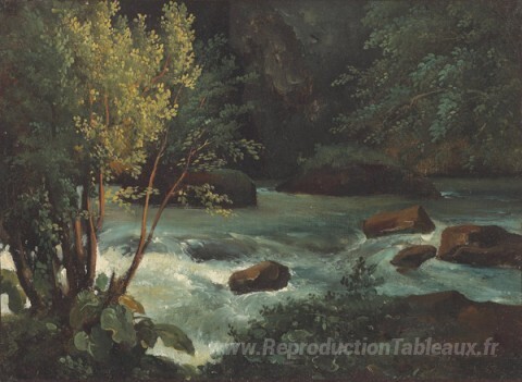 Nous vous proposons une reproduction artisanale sur toile du célèbre tableau 'Stream à Auvergne près de Royat' de Theodore Rousseau, provenant du Musée de la Reproduction.