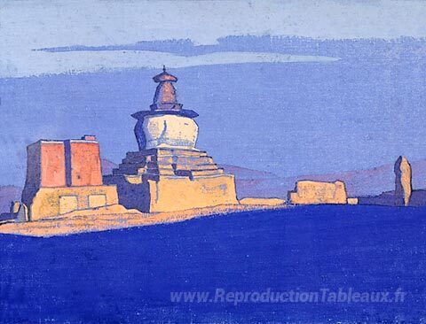 Nous vous proposons une reproduction artisanale sur toile du célèbre tableau 'Stupa à Chung-Chu' de Nicholas Roerich, provenant du Musée de la Reproduction.