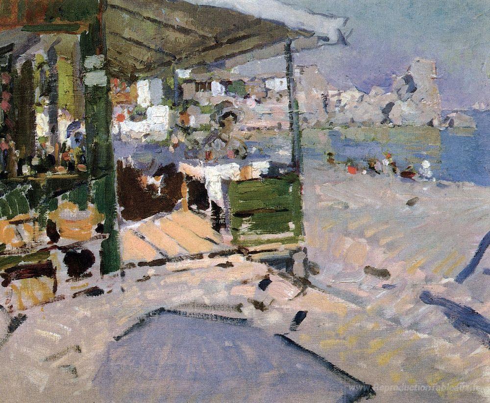 Nous vous proposons une reproduction artisanale sur toile du célèbre tableau 'Sur la plage de la Crimée' de Konstantin Korovin, provenant du Musée de la Reproduction.