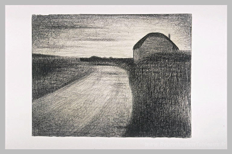 Nous vous proposons une reproduction artisanale sur toile du célèbre tableau 'Sur la route' de Georges Seurat, provenant du Musée de la Reproduction.