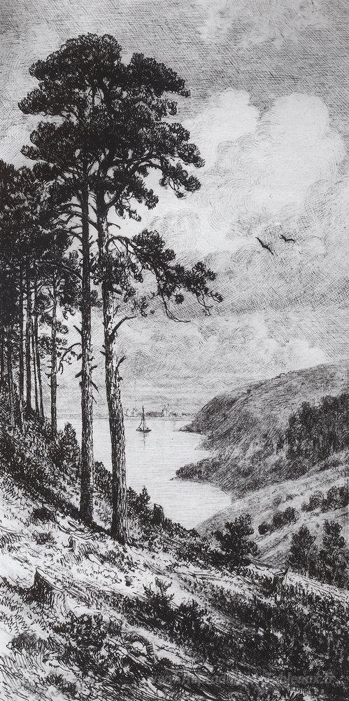 Nous vous proposons une reproduction artisanale sur toile du célèbre tableau 'Sur le kama près de Yelabuga' de Ivan Shishkin, provenant du Musée de la Reproduction.