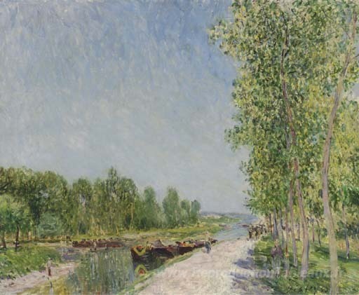 Nous vous proposons une reproduction artisanale sur toile du célèbre tableau 'Sur les rives du canal de Ling' de Alfred Sisley, provenant du Musée de la Reproduction.