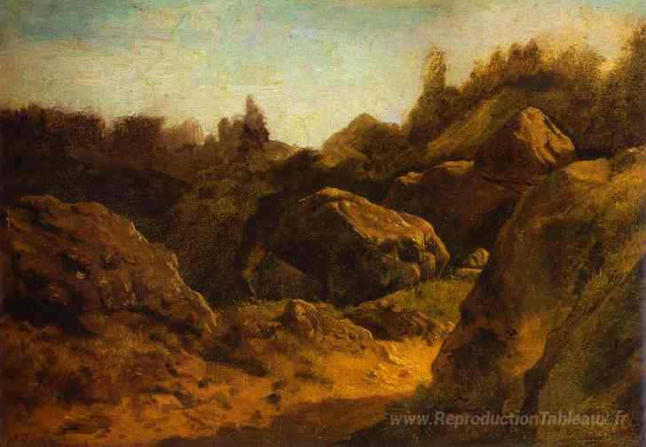 Nous vous proposons une reproduction artisanale sur toile du célèbre tableau 'Sur Valaam. Rochers' de Fyodor Vasilyev, provenant du Musée de la Reproduction.