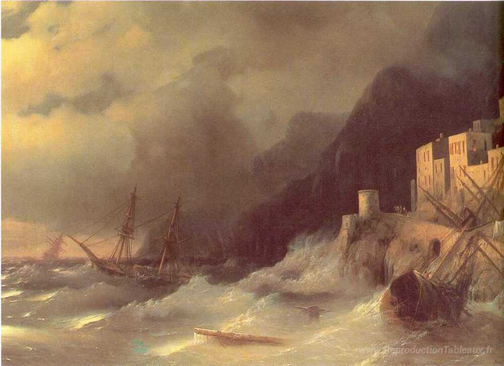 Nous vous proposons une reproduction artisanale sur toile du célèbre tableau 'Tempête' de Ivan Aivazovsky, provenant du Musée de la Reproduction.