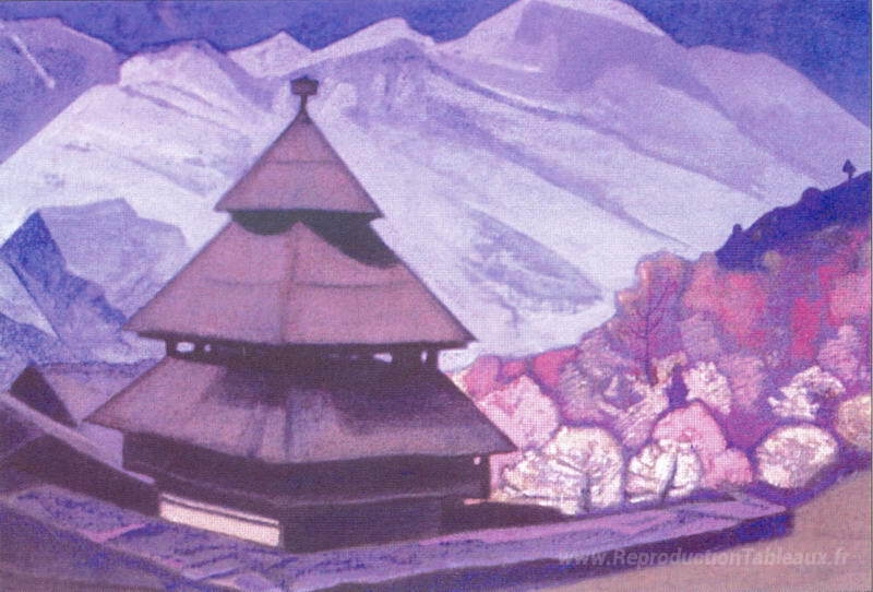 Nous vous proposons une reproduction artisanale sur toile du célèbre tableau 'Temple de Tripura Sundari' de Nicholas Roerich, provenant du Musée de la Reproduction.