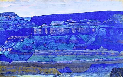 Nous vous proposons une reproduction artisanale sur toile du célèbre tableau 'Temples bleus' de Nicholas Roerich, provenant du Musée de la Reproduction.