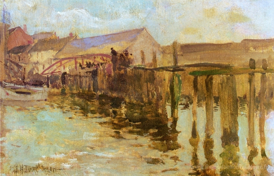 Nous vous proposons une reproduction artisanale sur toile du célèbre tableau 'The Landing, Newport' de John Henry Twachtman, provenant du Musée de la Reproduction.