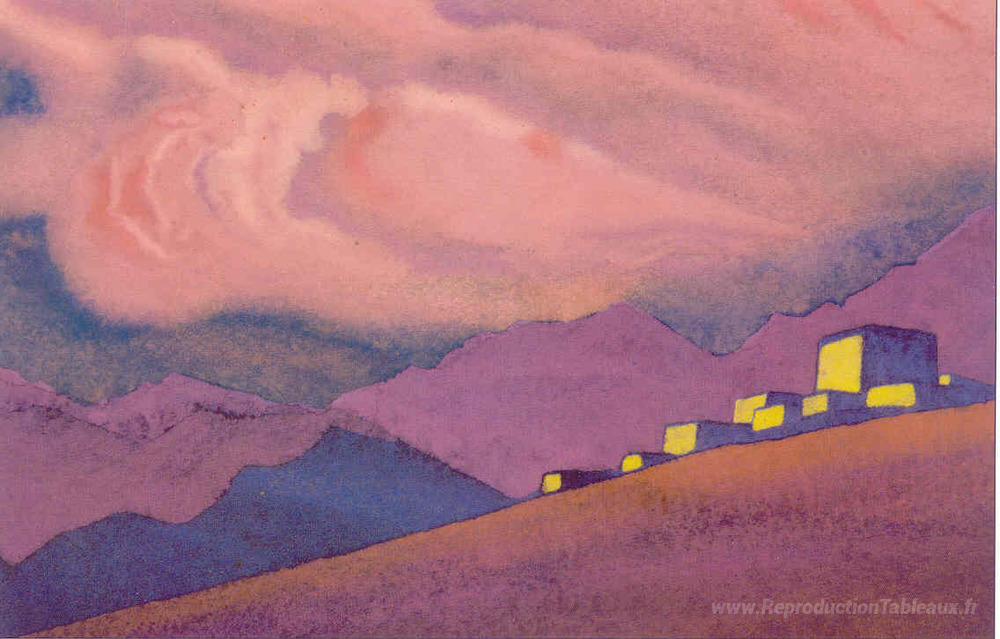 Nous vous proposons une reproduction artisanale sur toile du célèbre tableau 'Tibet' de Nicholas Roerich, provenant du Musée de la Reproduction.