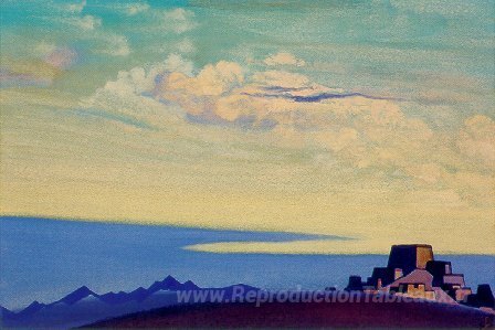 Nous vous proposons une reproduction artisanale sur toile du célèbre tableau 'Tibet' de Nicholas Roerich, provenant du Musée de la Reproduction.