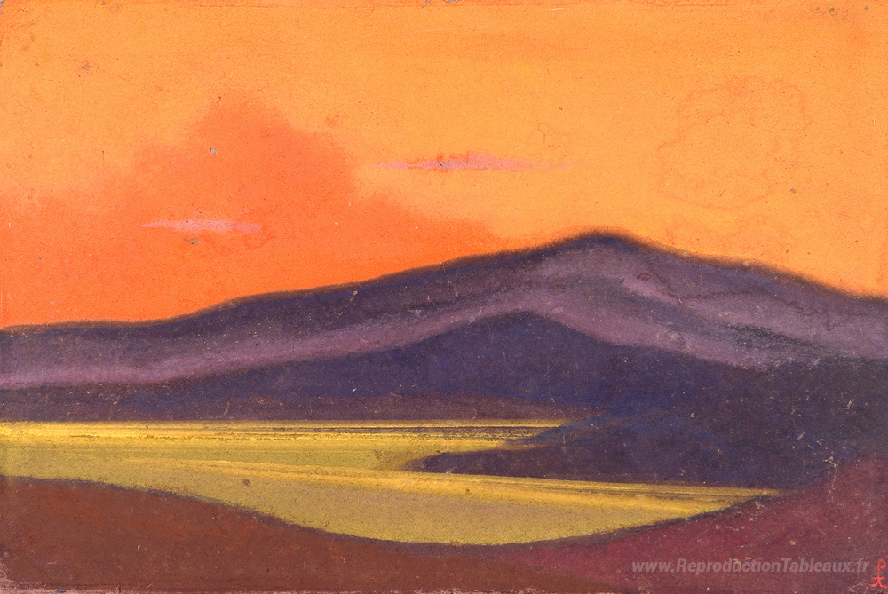 Nous vous proposons une reproduction artisanale sur toile du célèbre tableau 'Tibet' de Nicholas Roerich, provenant du Musée de la Reproduction.