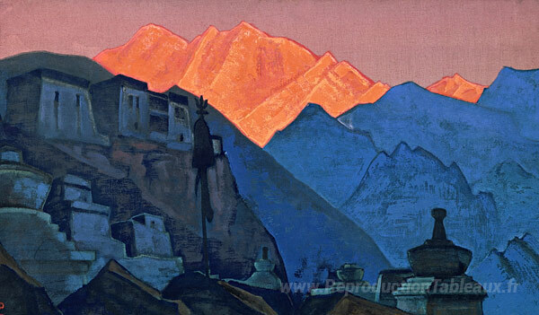 Nous vous proposons une reproduction artisanale sur toile du célèbre tableau 'Tibet. Pic flamboyant.' de Nicholas Roerich, provenant du Musée de la Reproduction.