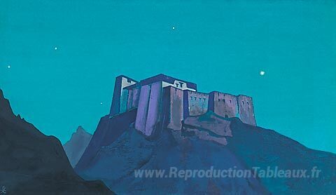 Nous vous proposons une reproduction artisanale sur toile du célèbre tableau 'Tibet roccaforte' de Nicholas Roerich, provenant du Musée de la Reproduction.