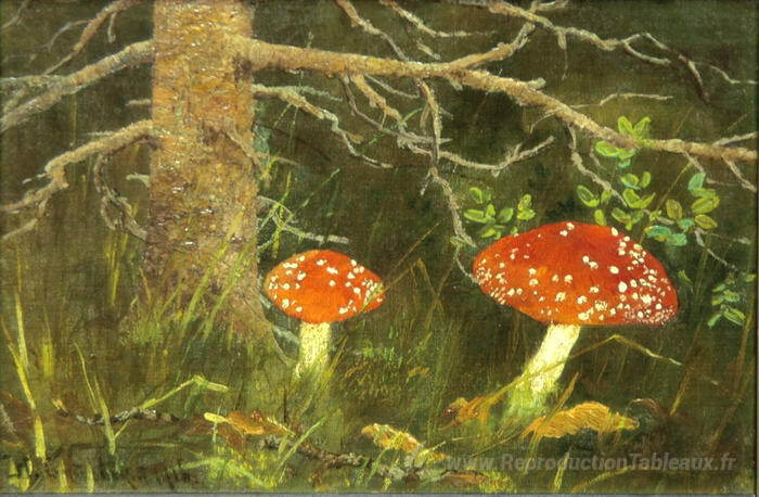 Nous vous proposons une reproduction artisanale sur toile du célèbre tableau 'Toadstools sous l'arbre' de Nikolay Bogdanov-Belsky, provenant du Musée de la Reproduction.