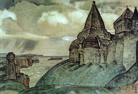Nous vous proposons une reproduction artisanale sur toile du célèbre tableau 'Tombe de Viking' de Nicholas Roerich, provenant du Musée de la Reproduction.