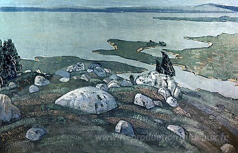 Nous vous proposons une reproduction artisanale sur toile du célèbre tableau 'Tombe du géant' de Nicholas Roerich, provenant du Musée de la Reproduction.