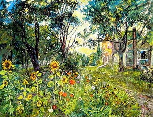 Nous vous proposons une reproduction artisanale sur toile du célèbre tableau 'Tournesols' de David Burliuk, provenant du Musée de la Reproduction.