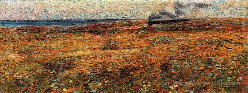 Nous vous proposons une reproduction artisanale sur toile du célèbre tableau 'Train qui passe' de Umberto Boccioni, provenant du Musée de la Reproduction.
