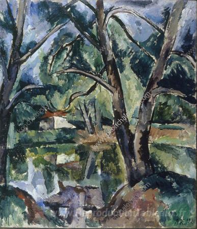 Nous vous proposons une reproduction artisanale sur toile du célèbre tableau 'Un étang' de Pyotr Konchalovsky, provenant du Musée de la Reproduction.
