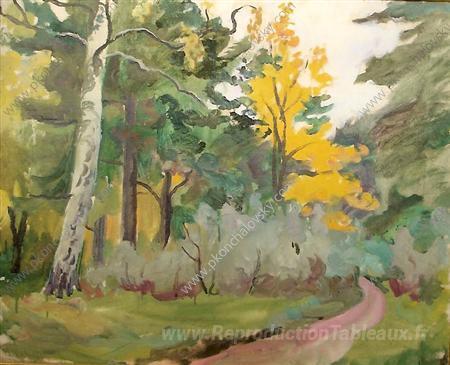 Nous vous proposons une reproduction artisanale sur toile du célèbre tableau 'Un chemin. En automne.' de Pyotr Konchalovsky, provenant du Musée de la Reproduction.