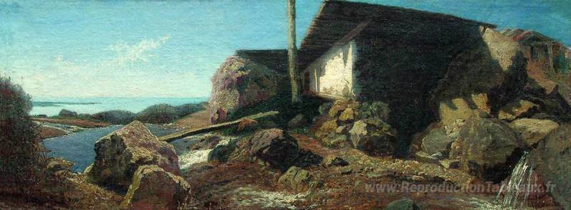 Nous vous proposons une reproduction artisanale sur toile du célèbre tableau 'Une maison près de la mer' de Volodymyr Orlovsky, provenant du Musée de la Reproduction.