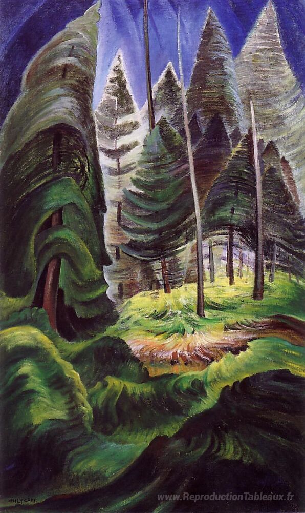 Nous vous proposons une reproduction artisanale sur toile du célèbre tableau 'Une mer précipitée de sous-bois' de Emily Carr, provenant du Musée de la Reproduction.